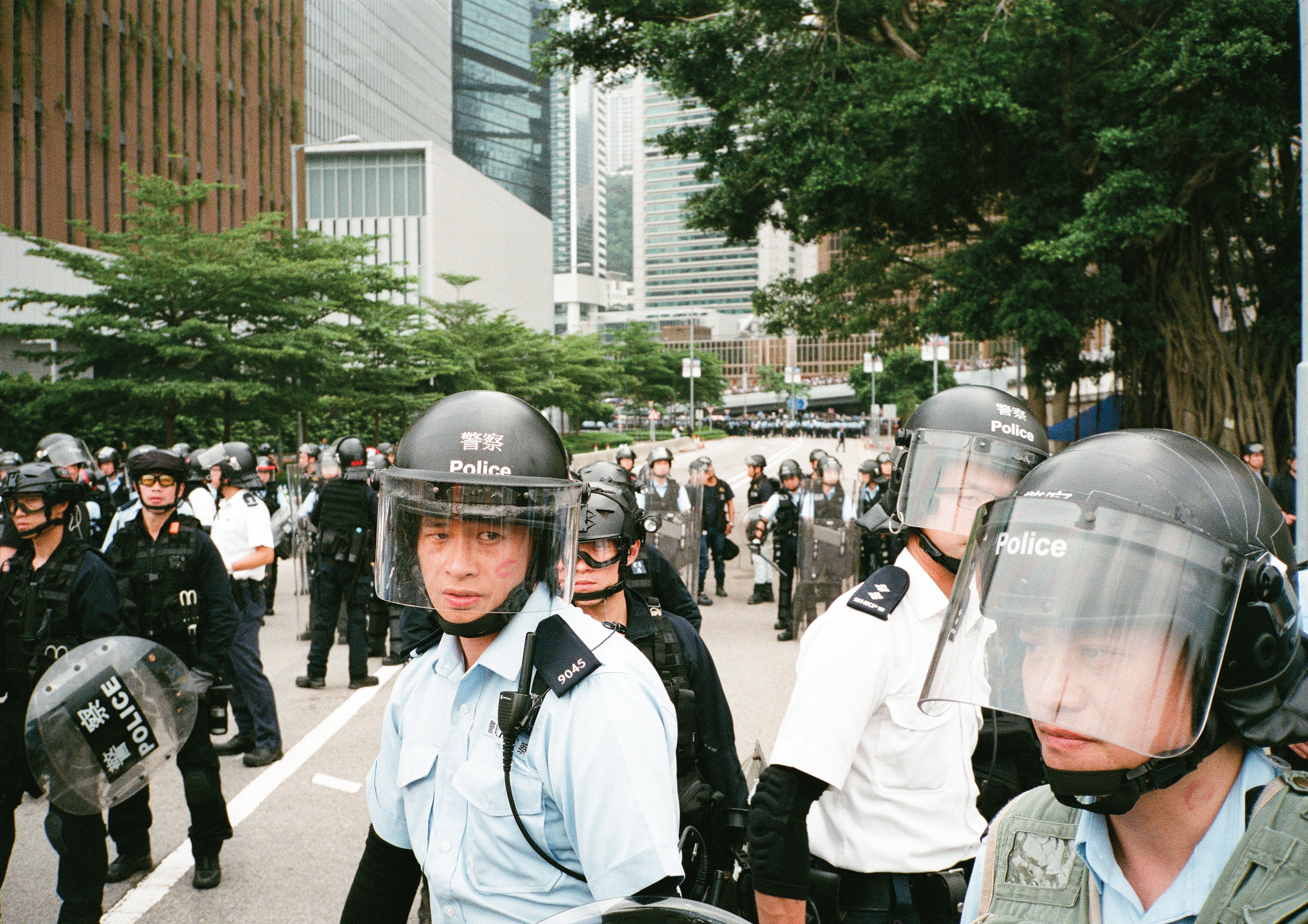 The spreads I developed under the theme of "OUT OF PLACE" featured film photography I had captured during the Hong Kong anti-extradition bill protests. The images I captured were focused on the riot police blockades that were set up around the legislative building in where the extradition bill would be written into law. 2 million Hong-Kongers attended the 2019 protest to express their distaste for the government's blatant disregard for the democracy of the special-administrative territory.